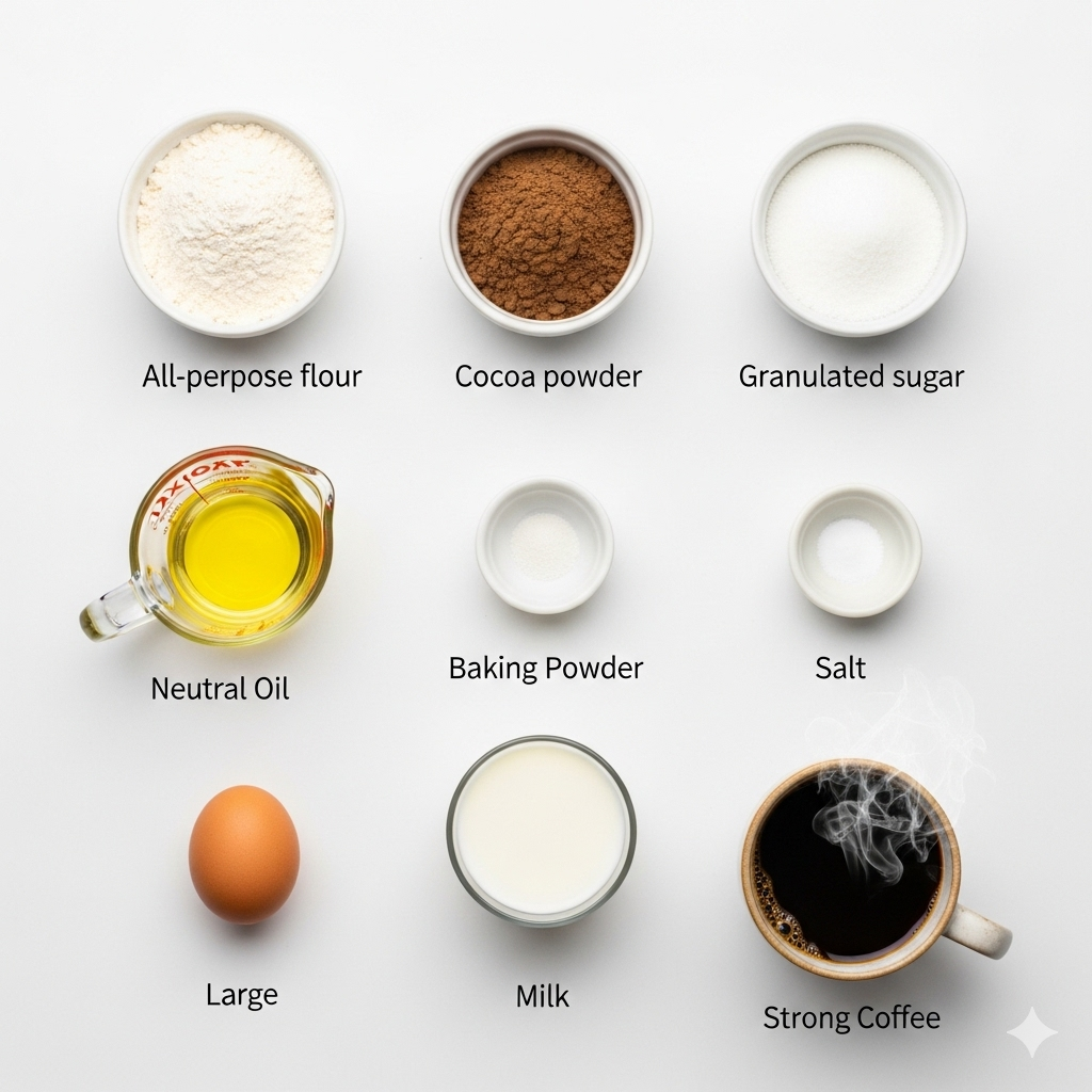 - Mix Dry Ingredients: In a large bowl, whisk together the 125g flour, 20g cocoa powder, 70g sugar, 1 tsp baking powder, and a pinch of salt.