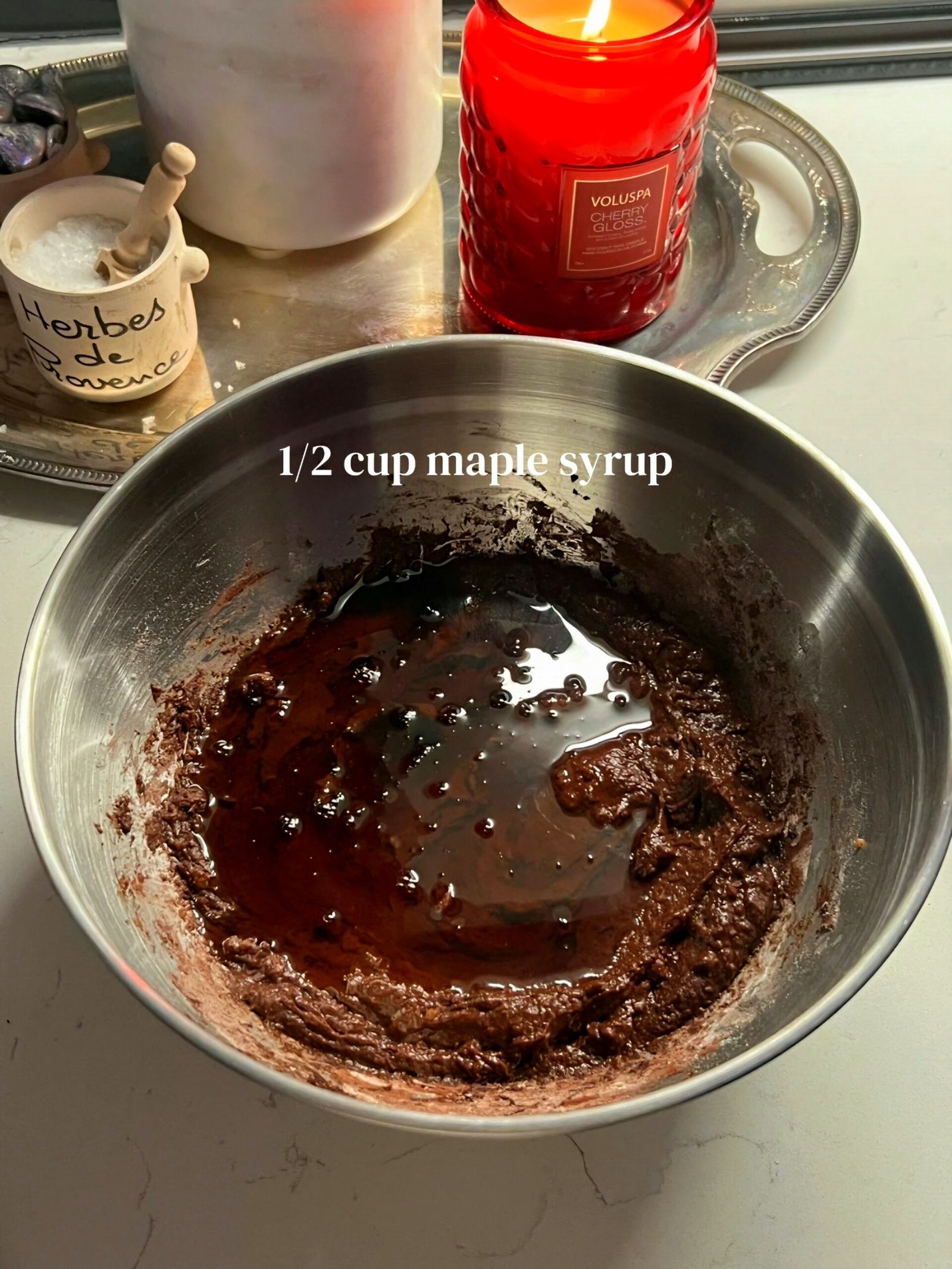 Pour in Β½ cup of pure maple syrup. This natural sweetener adds depth of flavor and keeps the brownies moist without refined sugar.