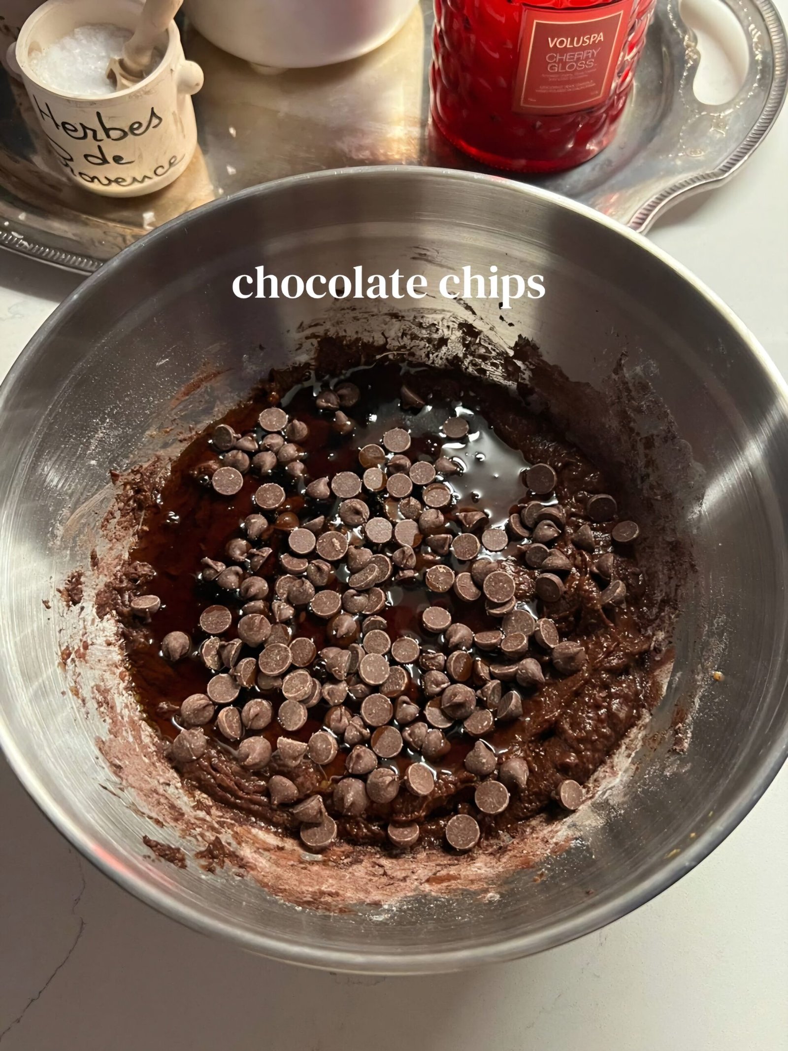 Gently fold in Β½ cup chocolate chips. Reserve some extra for topping!