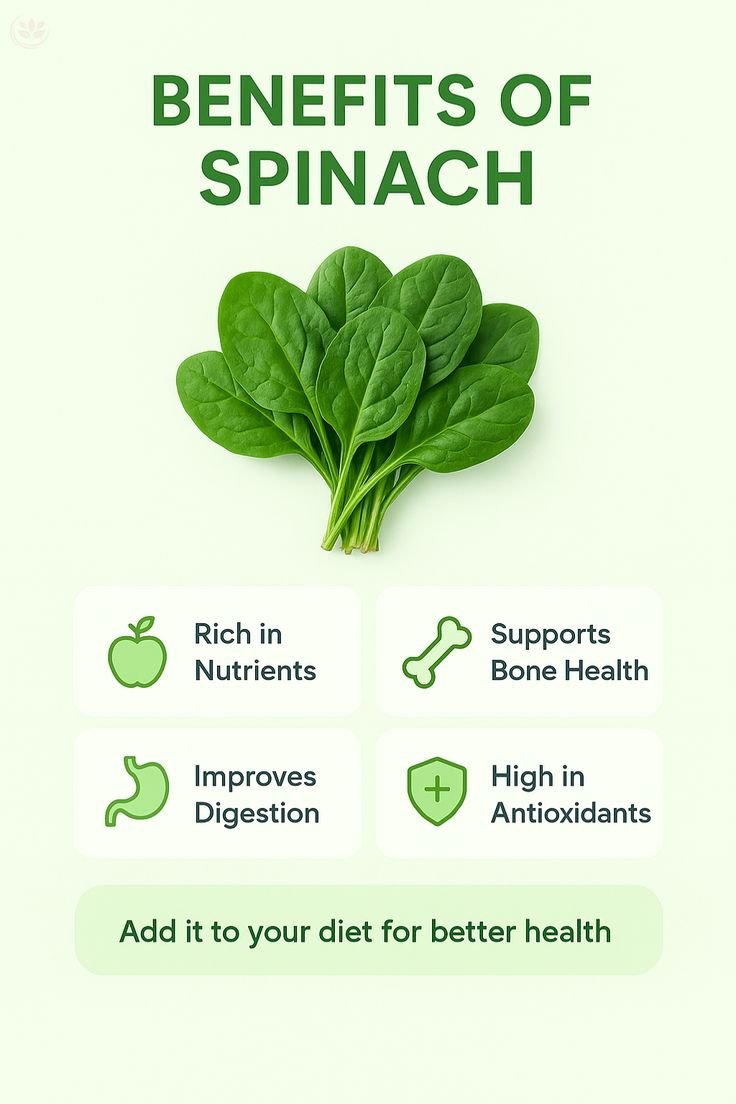 | Spinach | Folate & Antioxidants | Cell repair & DNA synthesis |