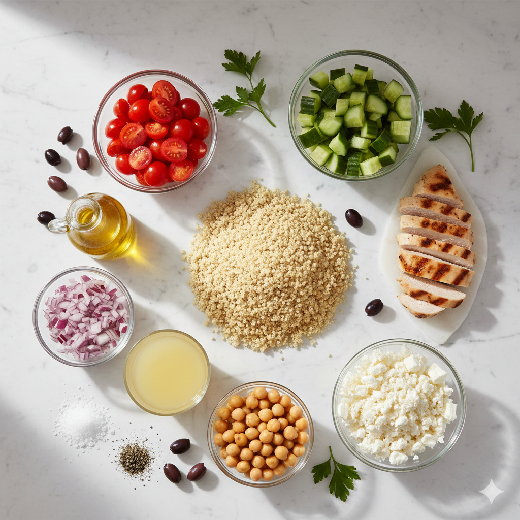 - Optional: Kalamata olives, parsley, grilled chicken