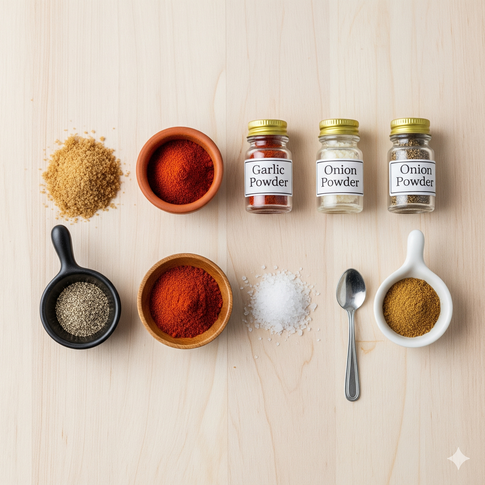 - Make the Dry Rub. In a small bowl, whisk together all the dry rub ingredients: brown sugar, paprika, garlic powder, onion powder, chili powder, salt, pepper, and cumin.