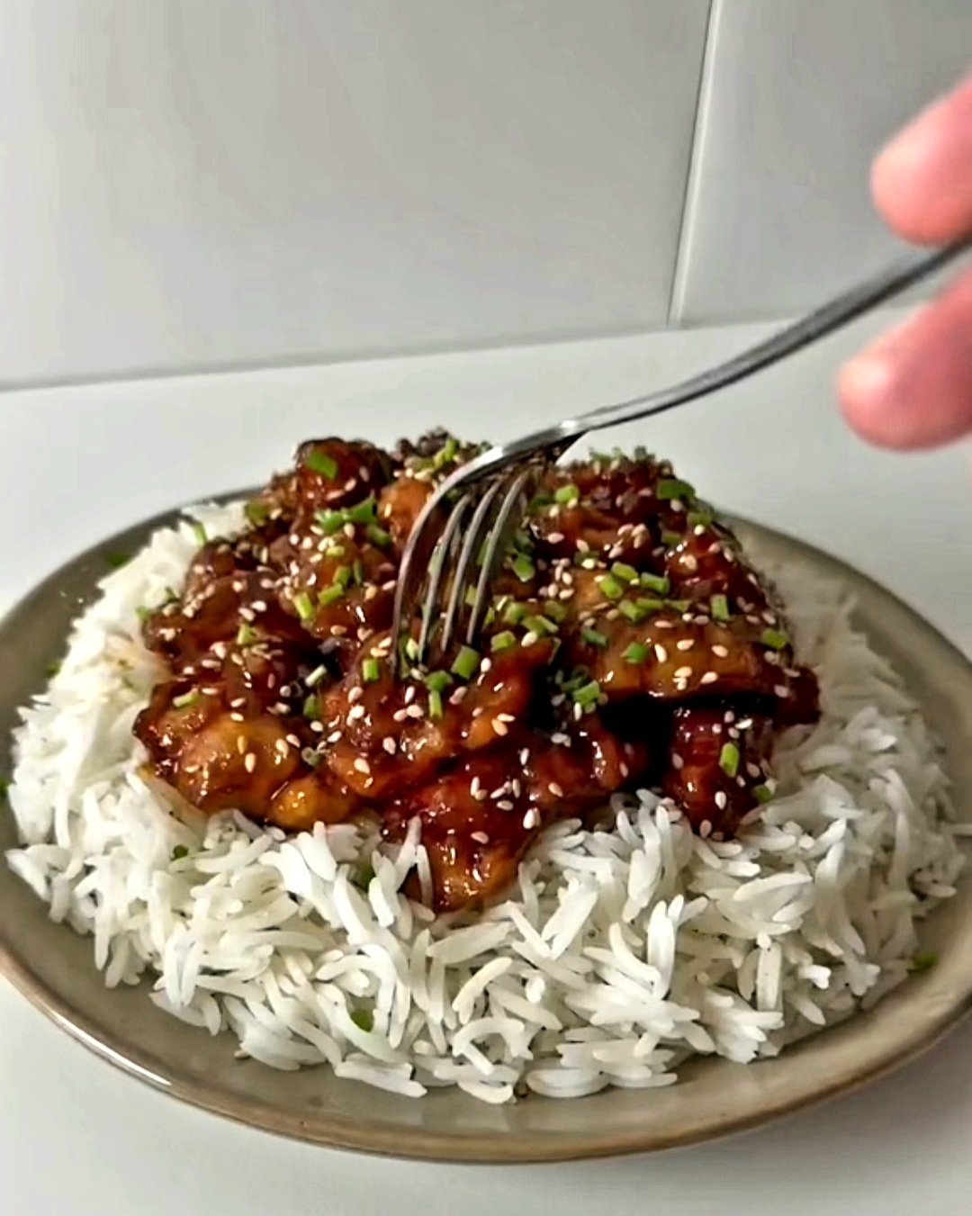 Bring the sauce to a gentle simmer. Give your cornstarch and water mixture (the “slurry”) a quick re-stir and then slowly drizzle it into the simmering sauce, whisking constantly. The sauce will begin to thicken almost immediately. Once it’s glossy and coats the back of a spoon, add the cooked chicken back into the skillet. Toss everything until every piece of chicken is gloriously coated in that sticky sauce. Remove from heat, garnish with those green onions and sesame seeds, and prepare to be worshipped by your family.