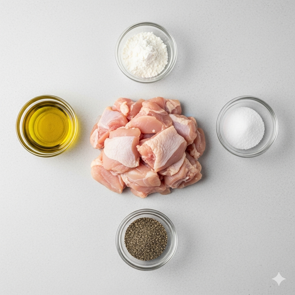 - Prep Chicken: Pat chicken pieces dry with paper towels. Place in a bowl and toss with 2 tbsp cornstarch, salt, and pepper until evenly coated.